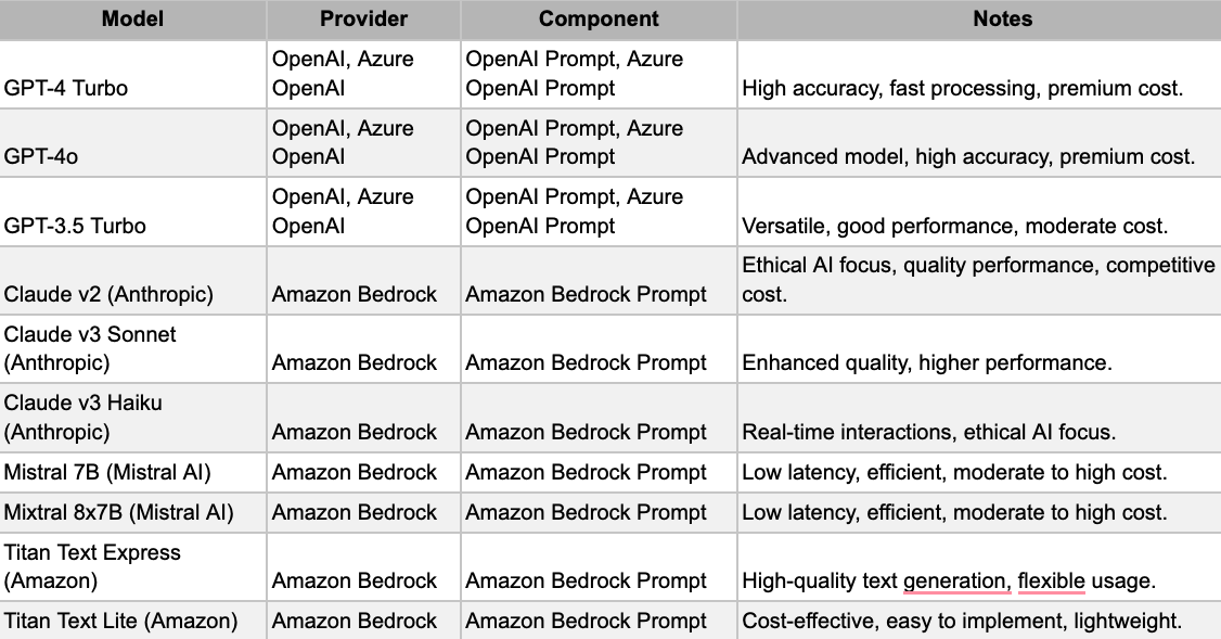 To leverage these AI integrations in your workflows, consider the specific needs of your data operations and choose models and components that best meet your requirements. Experiment with different models to see which provides the best performance for your use case, and take advantage of the flexibility and power of Matillion DPC to enhance your data processing capabilities.
